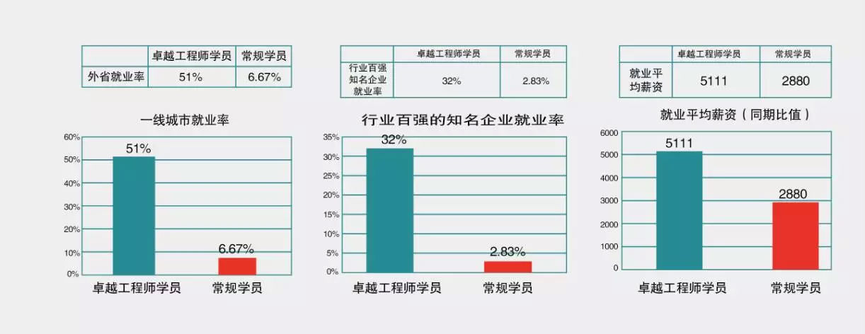 从就业方面来看,卓越学院学员大部分都走出云南,走进北京、深圳、重庆等大城市,与省外学子同台竞技,表现出了较强的竞争力,卓越学院省外就业学子月薪为八千左右,部分甚至过万元。就业在百强企业且最高薪资万元的突破,远高于其他应届毕业生的平均水平。