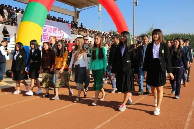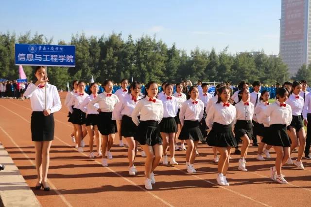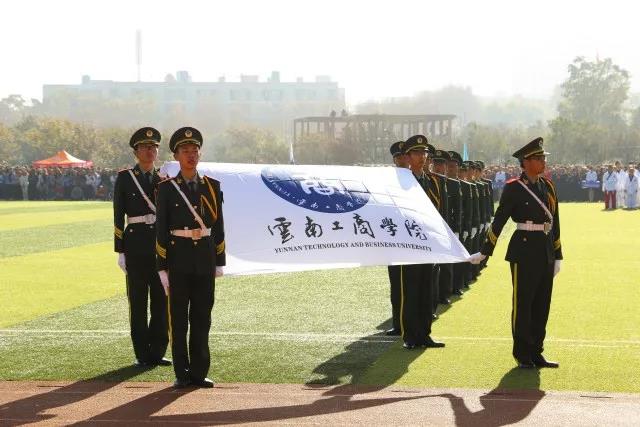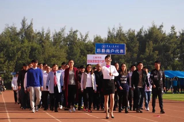 开幕式上,国旗队、校旗队、云工商吉祥物方阵、裁判员方阵、各学院方阵、行政后勤和后勤商户方阵陆续进场,在指挥员的带领下,他们迈着矫健步伐、喊着响亮口号、英姿飒爽地向主席台走来。