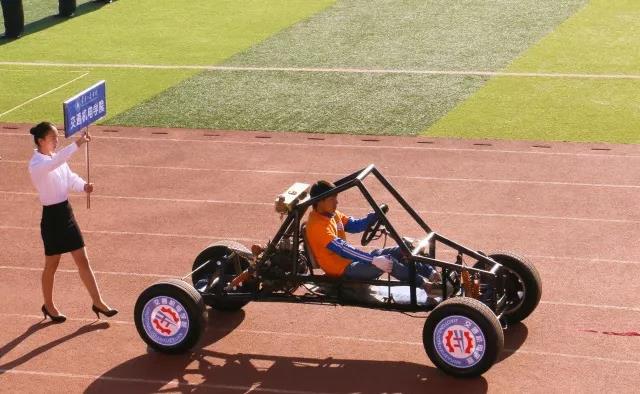 响应党的十九大(创新是引领发展的第一动力,是建设现代化经济体系的战略支撑。)看,由交通机电学院师生们自己研制的环保电动汽车相当拉轰,威武地向主席台前挺进。