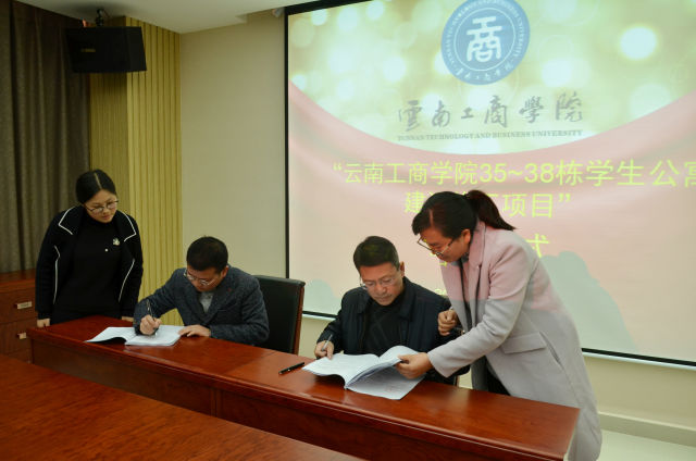邹利斌常务副校长和方菊明董事长分别代表各自单位,在合作协议书上签字。会后,在李娅副校长和部分处室负责人的陪同下,云南工程建设总承包股份有限公司相关负责人实地查看了我校新建的4栋学生公寓施工工地。
