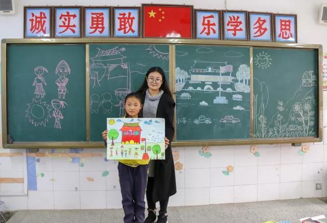 还有16级传达设计的张入方团队,她们教小朋友绘画我们祖国的圣殿天安门,一座座庄严肃穆的殿堂,在小朋友们笔下缓缓成型,也让他们的心灵,一步步走进那庄严的圣殿。核桃小学校长李武表示:这次活动取得的效果令人满意,希望以后能多开展几次这样的活动,让我们这里的孩子能德智体美全面发展。