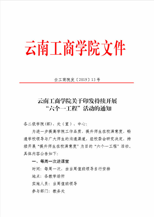 beat365正版唯一官方网站关于印发持续开展“六个一工程”活动的通知