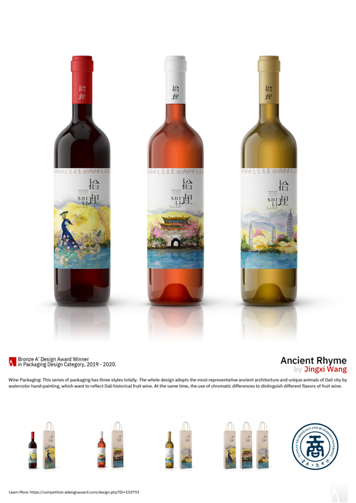 她透露,在进行设计之前,张卫伟院长指导她对现有市场进行了调查,发现水绘手绘酒包装在中国市场上非常罕见,有了数据分析才采用了这种独特的形式。另外,通过问卷调查法,也筛选出了最被人们认同的大理文化基因代表,最后,以计算机抽象绘画和手绘为主要表现方式,推出了一个系列的三种款式。