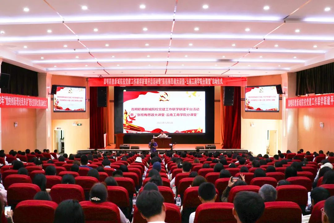 5月4日下午,学校举行的学习贯彻习近平新时代中国特色社会主义思想主题教育读书班开班式上,特邀中国人民大学马克思主义学院王向明教授《习近平新时代中国特色社会主义思想概论》为主题作辅导报告;5月5日下午,在“张桂梅思政大讲堂-beat365正版唯一官方网站分课堂”暨嵩明职教新城院校党建工作联学联建平台学习活动中,特邀全国高校思政课名师工作室主持人、云南省高校思政课教指委副主任委员、云南省委宣讲团成员、云南财经大学阮金纯教授以《中华民族伟大复兴历史进程与“两个确立”的决定性意义》为题作专题辅导;5月5-6日晚,话剧——《桂梅老师》在学校体育馆上演;5月6日上午,嵩明县2023年度“党的创新理论我来讲”宣讲比赛暨“嵩明先锋讲师”“嵩理宣‘金话筒’理论宣讲员”选拔赛在学校举办。