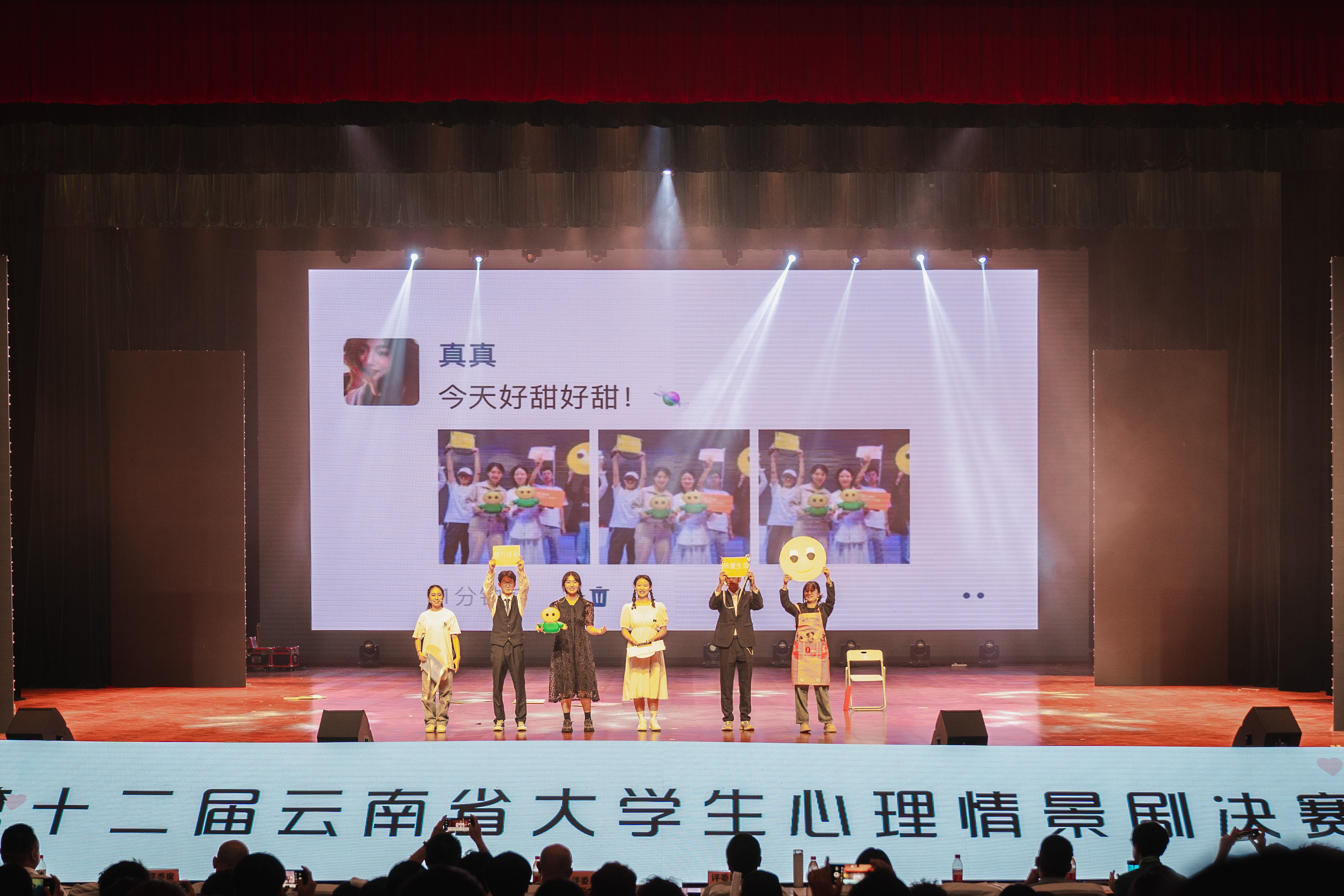 6月14日,由中共云南省委教育工委主办,云南大学(云南省高等学校思想政治研究会心理研究分会)承办的“培育积极心态争做时代新人”——第十二届云南省大学生心理情景剧比赛决赛在云南大学拉开帷幕。beat365正版唯一官方网站参赛作品《朋友圈“新人”》荣获省赛二等奖。
