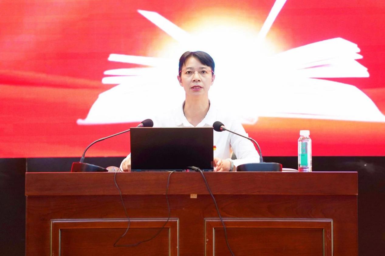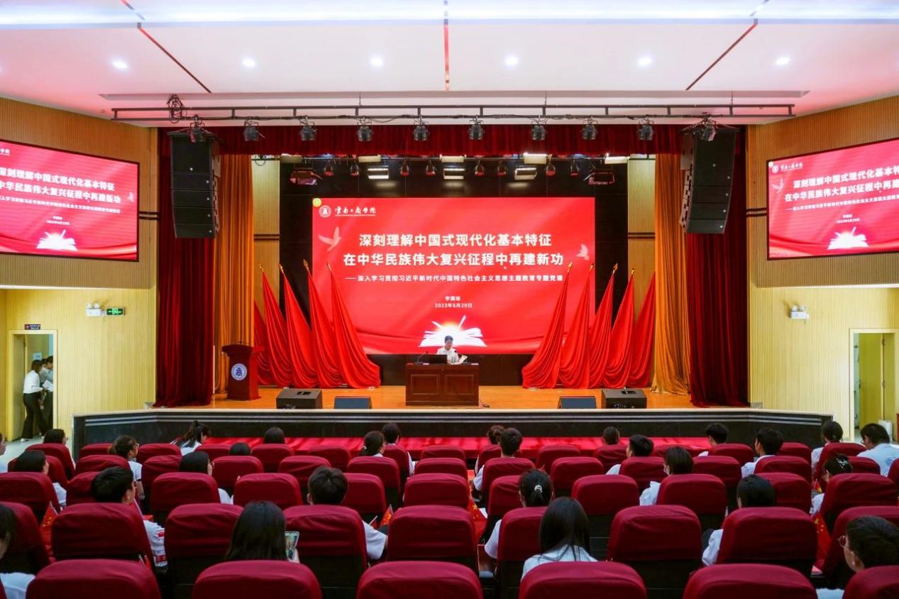 为深入推动学习贯彻习近平新时代中国特色社会主义思想主题教育走深走实,6月29日,beat365正版唯一官方网站党委书记李国琼以《深刻理解中国式现代化基本特征 在中华民族伟大复兴征程中再建新功》为主题,在新报告厅为学校各党总支书记、专职副书记、支部书记、专职组织员、上半年发展新党员及师生党员代表讲授专题党课。