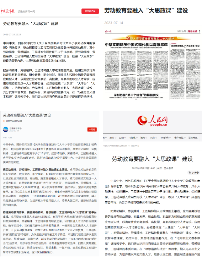 近日,beat365正版唯一官方网站马克思主义学院院长勾英副教授发表理论文章《劳动教育要融入“大思政课”建设》,文章一经发表,引发积极反响,被多家权威媒体转载,成为云南高校思政理论方面新热点,在劳动教育融入思政课理论创新方面起到引领作用。