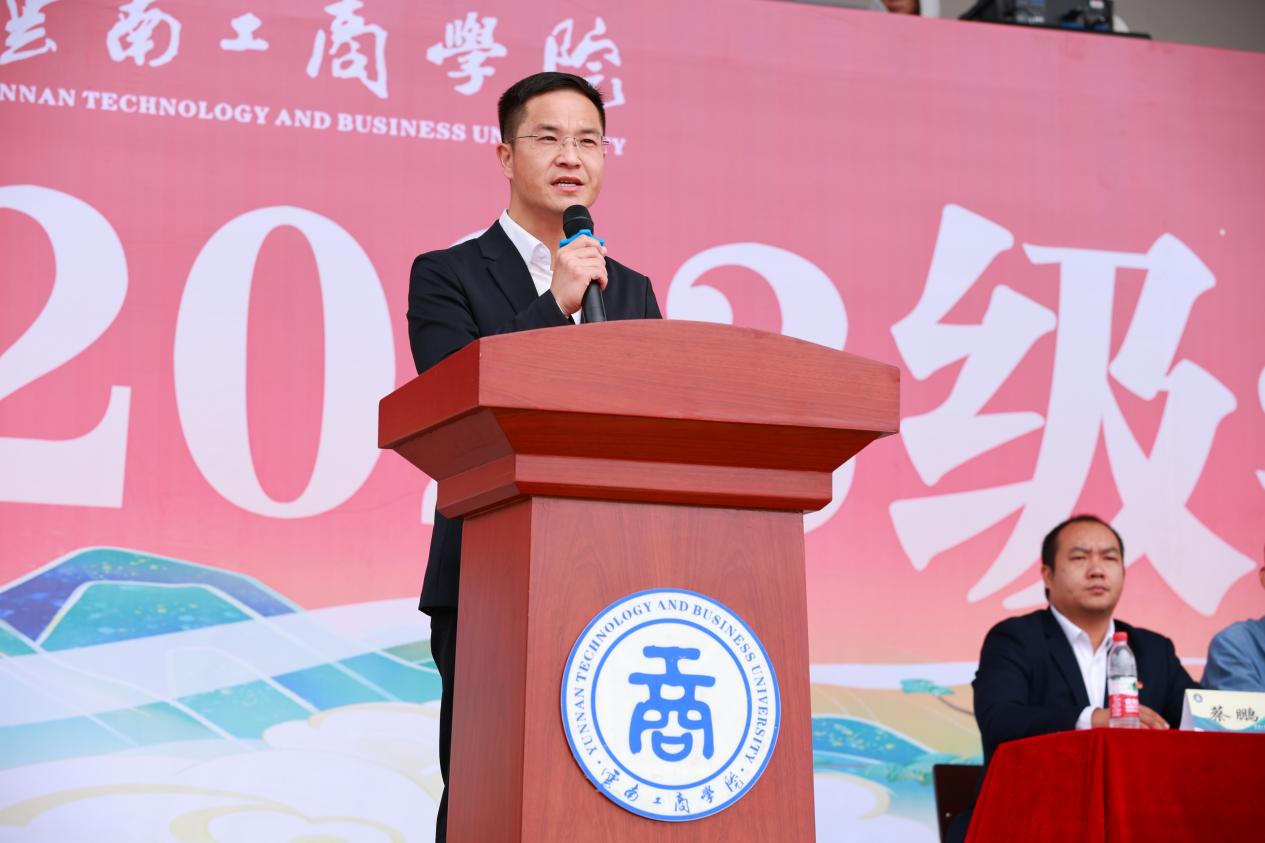 李国琼鼓励同学们,军训是大学生活最为重要的必修课,也是进入云工商的第一堂思想课、体能课、意志课、动力课。军训锻炼的是身体,磨练的是意志,训练的是作风,熔铸的是理想,高扬的是精神。面对崭新的大学生活,希望同学们努力做到三个方面:一是要锚定“强国有我”志气,坚定理想信念;二是要笃定“奋斗有我”骨气,书写青春华章;三是要坚定“功成有我”底气,磨砺过硬本领。以军训为起点,珍惜青春时光、架起理想风帆、坚守执著信念、练就过硬本领、勇于担当奉献,努力传承弘扬“自强、卓越、报国”的校训精神,刻苦钻研,追求真理,潜心掌握专业技能,做勇攀高峰的“实干家”,主动服务国家、奉献社会,为新时代赋能,为中国梦续航。