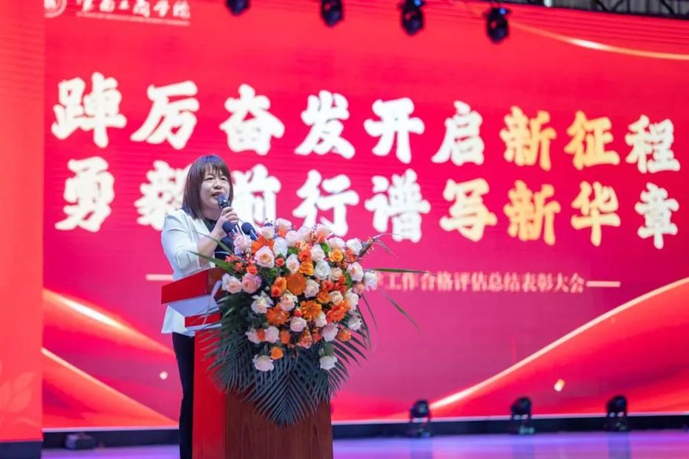 执行董事长姬其佐以“踔厉奋发开启新征程,勇毅前行谱写新华章”为题,作本科教学工作合格评估总结讲话。他回顾了学校评估的奋斗历程,向鼎力支持学校的集团、为本科教学工作合格评估凝心聚力、风雨同舟的每一位云工商人致以诚挚的感谢。
