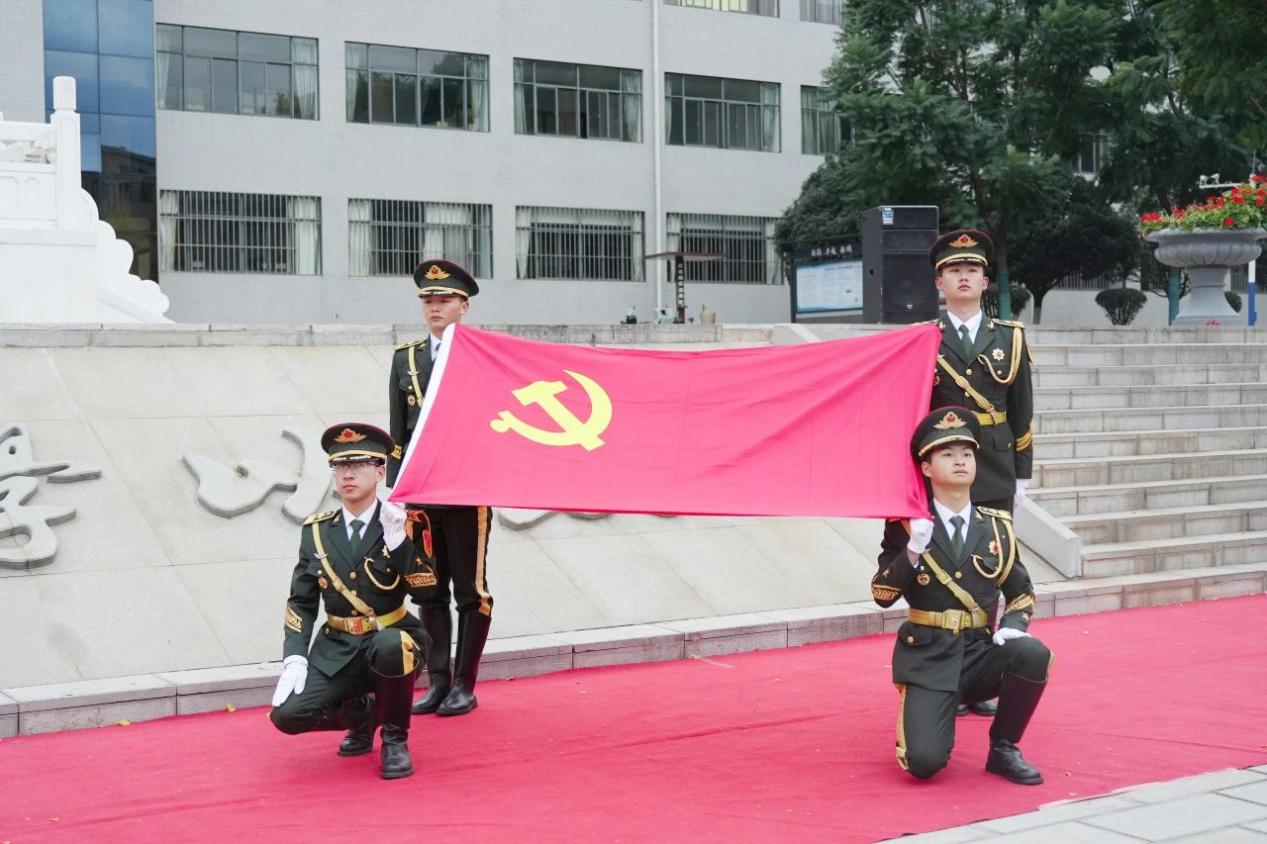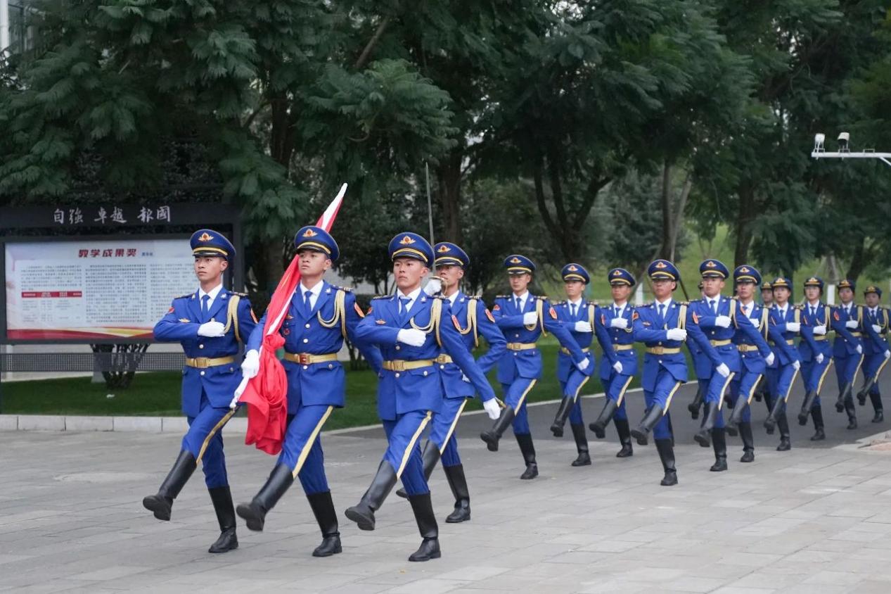 迎着清新的晨风,国旗仪仗队迈着整齐的步伐,护着鲜红的国旗走向升旗台。参与师生奏唱国歌,注目鲜艳的五星红旗缓缓升起,共上一堂生动的爱国主义教育课。