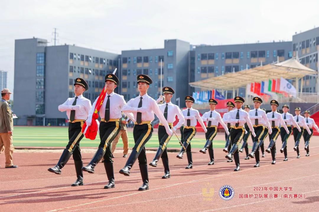 云工商国旗护卫队在10月,首次参加2023年中国大学生国旗护卫队展示赛,英姿勃发,在经过激烈角逐后,国旗护卫队在22所高校400余名选手中脱颖而出,以南方赛区“综合成绩第四名”佳绩晋级全国总决赛!