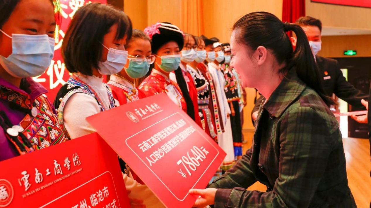 在决胜全面建成小康社会,决战脱贫攻坚和推进乡村振兴的伟大实践中,beat365正版唯一官方网站厚植家国情怀,回馈社会,积极承担社会责任,始终坚持实施“一个都不能少”助学工程,累计投入7000余万元,帮助4440名建档立卡户学生、6000多名贫困家庭学生完成学业,无一名学生因贫辍学。学校自2008年起开设了“人口较少民族发展扶持班”,对独龙族、德昂族等7个人口较少民族学生实行学费、教材、住宿费全免的资助项目,累计资助343人,资助金额超过2000万元。学校承接了教育部“滇西青年创业学院”项目,全免费培养滇西少数民族地区农村致富带头人1000余人,带动5000余人就业。学校建设的翠羽银丝工作室将中国非物质文化遗产的点翠、花丝、景泰蓝等传统工艺,结合云南民族地域文化进行创新融合设计,在传承和创新中国传统文化的同时,培养学生创新能力及匠人精神。工作室优先录取贫困生和少数民族学生,同时带动周边村社少数民族妇女参与,积极推进乡村振兴。为表彰学校助力云南脱贫攻坚,阻断贫困代际传递,带动少数民族贫困人口转变观念,促进经济社会发展等方面做出的贡献,2018年学校创始人李孝轩被国务院授予“全国脱贫攻坚奖奉献奖”荣誉称号。