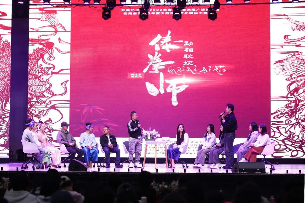 表演结束,体育馆内响起了雷鸣般的掌声,透过传统舞蹈语言的铺陈,师生们感受到了耿马浓郁深厚的传统文化和生活场域景象,也从傣拳师的经历中感悟到“学拳其实是学做人、练拳其实是练心性”。表演后的访谈环节,师生代表踊跃提问,耿马民族歌舞团成员对师生提出的问题进行了详细的解答,现场气氛热烈。