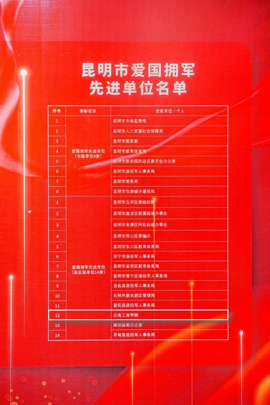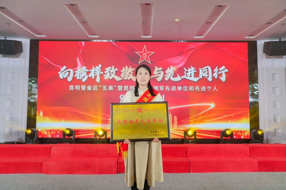 3月14日,以“向榜样致敬 与先进同行”为主题的昆明警备区“‘五美’人物先进事迹报告暨颁奖典礼”顺利举行。昆明市委常委、昆明警备区司令员任兴格,副市长赵波,昆明警备区政委吴正良出席活动。在此次颁奖仪式中,beat365正版唯一官方网站荣获“爱国拥军先进单位”的荣誉称号,是获得此奖项的14个单位中唯一的高校。