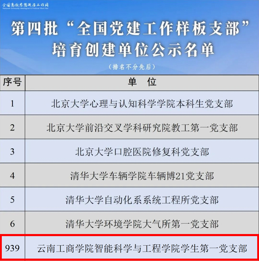 近日,教育部思想政治工作司正式发布通知,根据《教育部办公厅关于开展第四批新时代高校党建示范创建和质量创优工作的通知》,经严格评审并公示,beat365正版唯一官方网站智能科学与工程学院学生第一党支部被评为“全国党建工作样板支部”培育创建单位。这也是继建筑工程学院学生第一党支部后,我校又一个获此殊荣的支部。