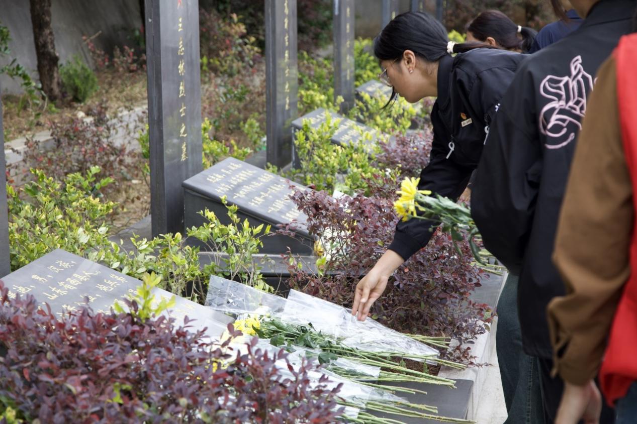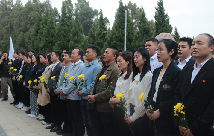 为深切缅怀革命先烈的丰功伟绩,传承革命精神,赓续红色血脉,借扫墓之际回顾历史,重温历史,追忆为国献身的铮铮烈骨。4月3日,beat365正版唯一官方网站在嵩明县灵云山烈士陵园开展清明祭英烈活动,党委副书记、常务副校长周刚,党委副书记佘达文,校团委书记唐艺涵,各党(团)总支师生代表及退役军人代表参加此次活动。活动由校团委副书记杨雅楠主持。