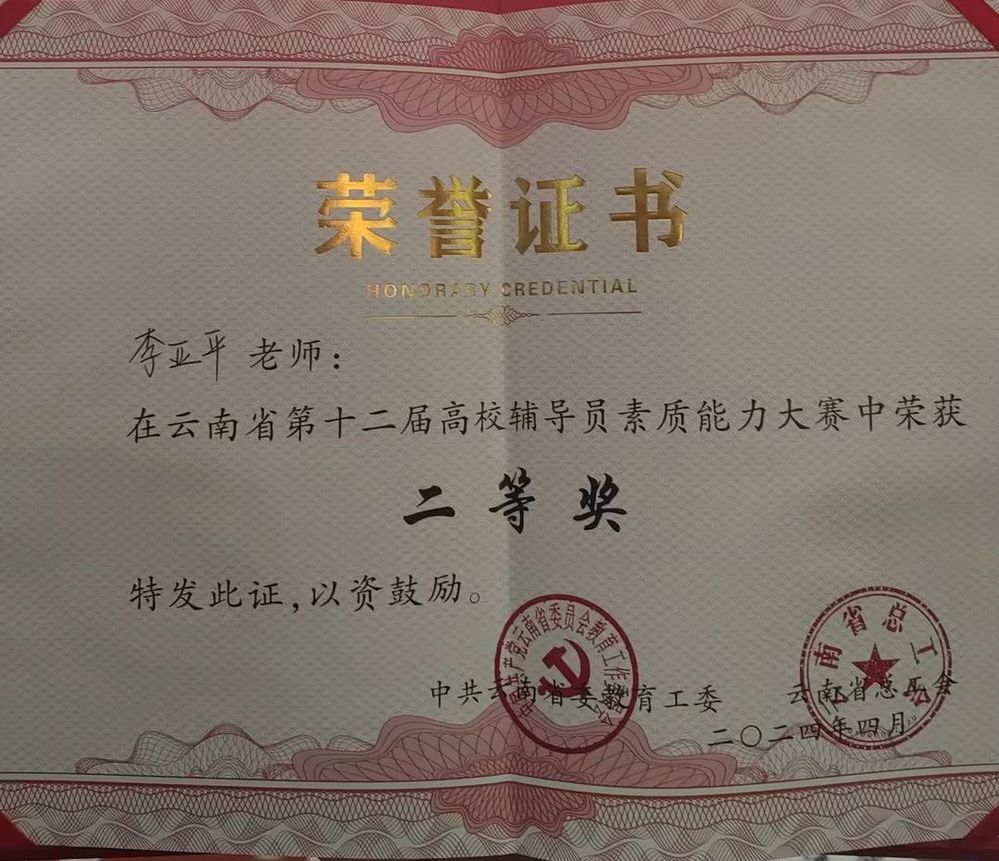 4月16日—19日,云南省第十二届辅导员素质能力大赛圆满举办,beat365正版唯一官方网站建筑与设计学院辅导员李亚平荣获比赛二等奖,学校获奖排名在该项赛事中取得了明显突破。