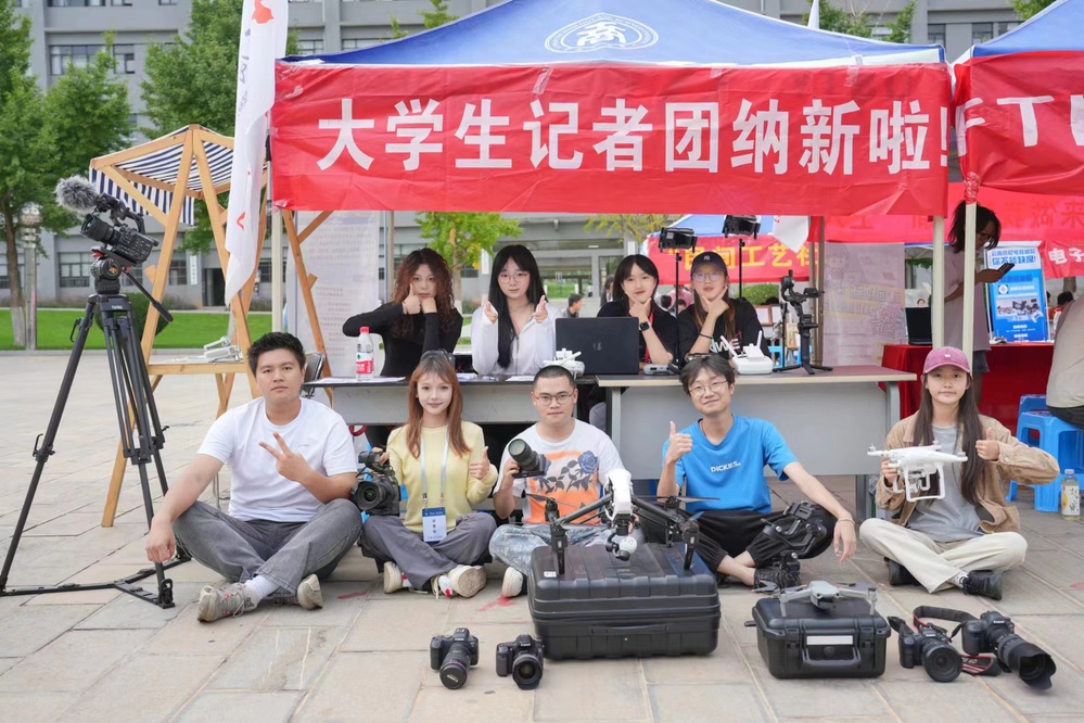 ⼤学⽣记者团积极发挥第二课堂作用,践行思想政治引领的重要使命。在报道校园活动中,积极发挥社团优势,传播正能量,为校园文化建设贡献⼒量。