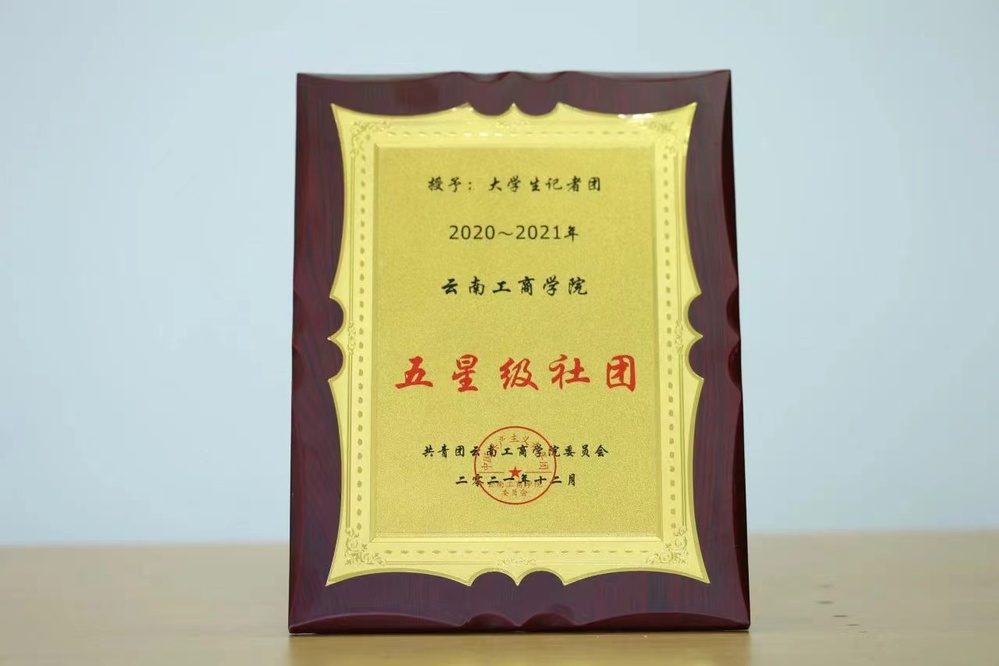 2021 年,荣获云南⼯商学院“五星级社团”荣誉
