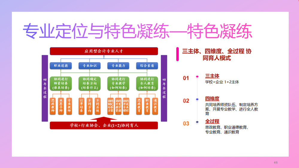 杨忠海教授从高阶教学目标、学情分析、教学痛点分析、创新教学理念与实践、成效成果展示等方面介绍了他在哈尔滨工程大学《会计学》课程的课程建设情况。他对《会计学》课程“五位一体两融合”的教学改革研究与实践进行了详细的讲解,“五位一体”是指课程思政、会计基础知识、财务报表分析基础、商务智能分析技术和上市公司真实案例为一体;“两融合”则是教师资源提供、校企合作与学生自我学习的课堂内外融合和学生课内展示与教师课上点评的课内互动融合。