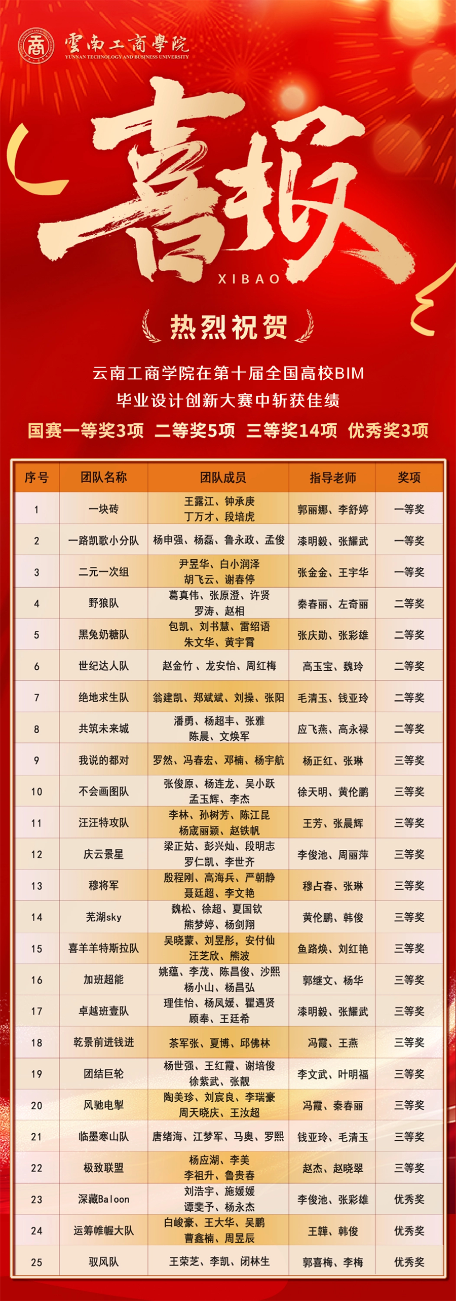 近日,beat365正版唯一官方网站在第十届全国高校BIM毕业设计创新大赛中荣获国赛一等奖3项、国赛二等奖5项、国赛三等奖14项、国赛优秀奖3项。