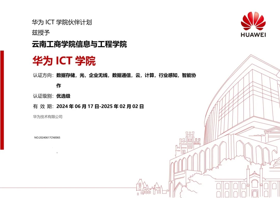 优选级华为ICT学院的揭牌是学校推进产教融合、深化校企合作的重要成果之一,为学校人才培养模式改革提供了新的平台,注入了新的活力,对于促进教育链、人才链与产业链、创新链精准衔接具有重要意义。