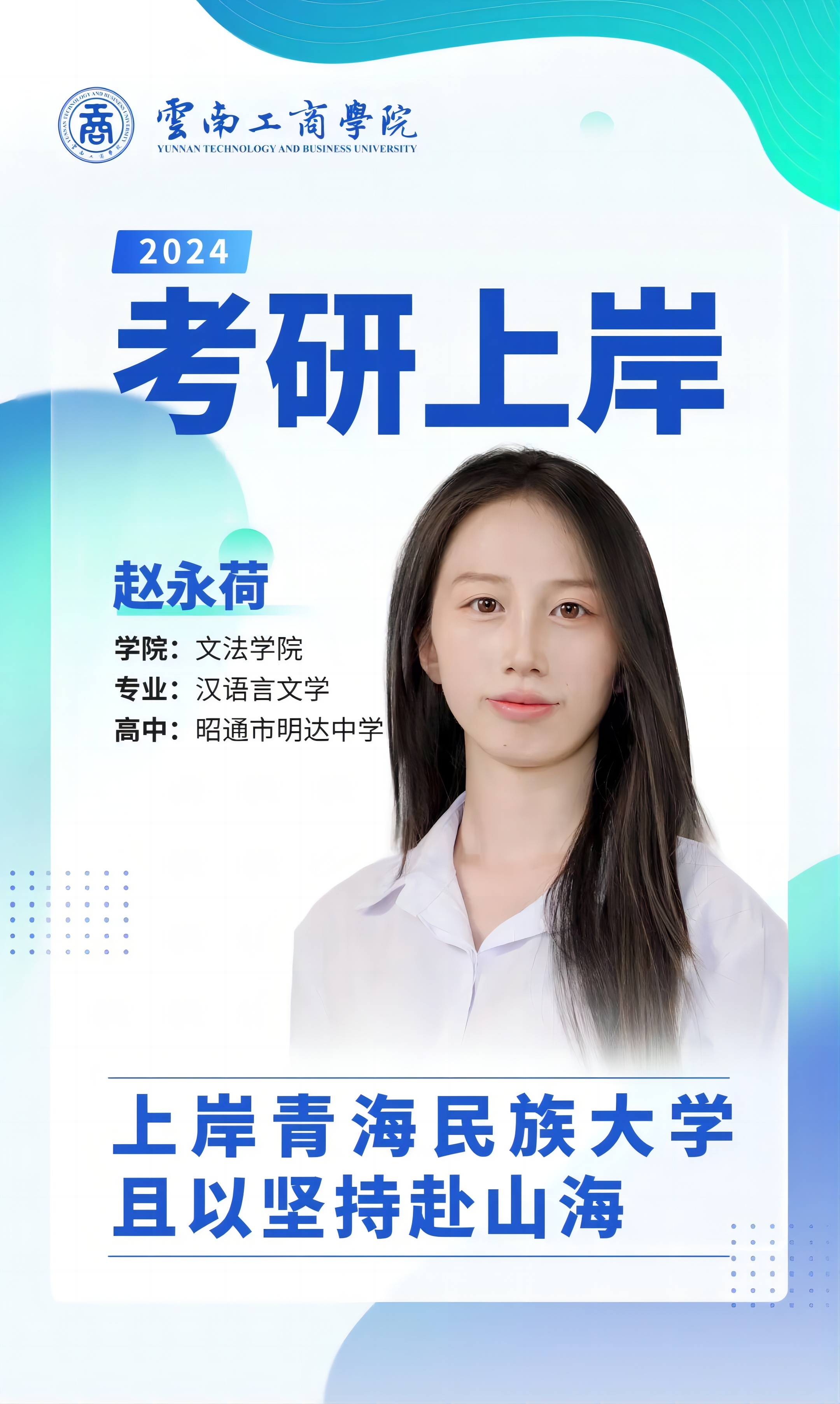 大家好,我是2020级【本科】汉语言文学11班的学生赵永荷,高中毕业于昭通市明达中学,考研顺利上岸青海民族大学。