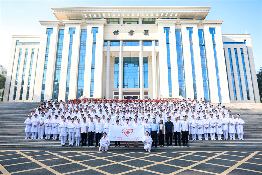 中国南丁格尔志愿护理服务总队向beat365正版唯一官方网站授旗,并赠送南丁格尔画像。
