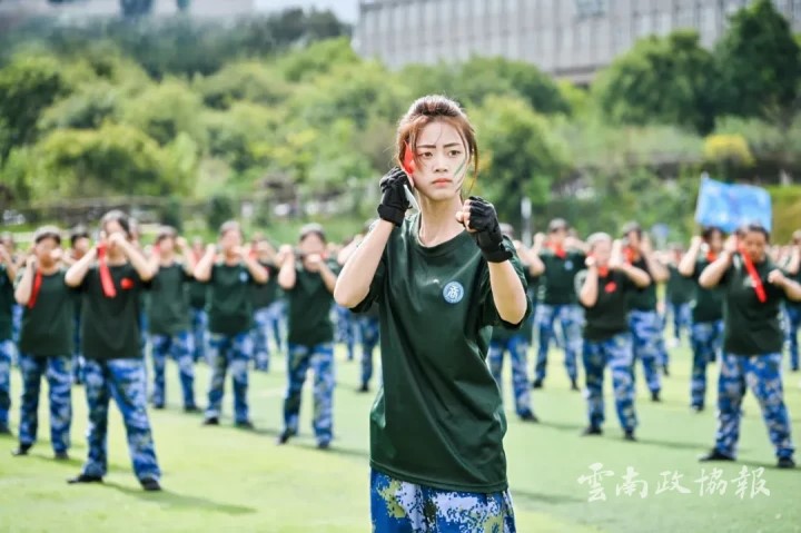 踏步、转身、出枪,排面整齐、动作有力,枪起枪落间充满力量与美感,她们用阳光和朝气书写着青春,尽显巾帼不让须眉之风采。