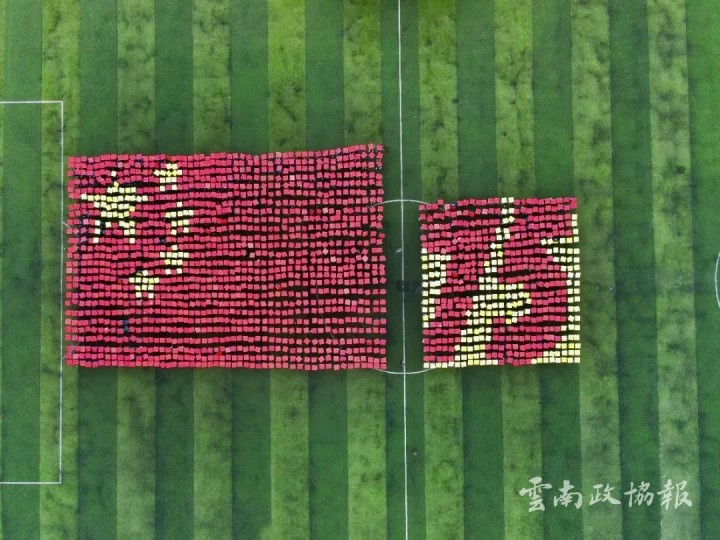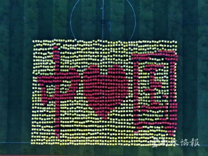 1800名学子以身体为画笔,共同绘制出一幅幅充满深意图案,在壮美的画面中,他们用行动展现出,对祖国的拳拳之心,诉说对祖国的无限热爱。