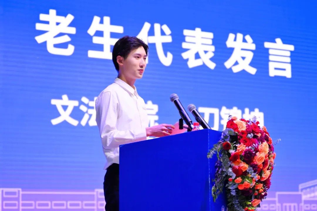 老生代表刀锦坤、吕昊宸在发言中分享了自己在beat365正版唯一官方网站的成长故事,表示作为老生,将以身作则,发挥榜样作用,认真学习、积极参与校园活动,帮助新生尽快适应大学生活,共同在学习和个人成长上取得进步。