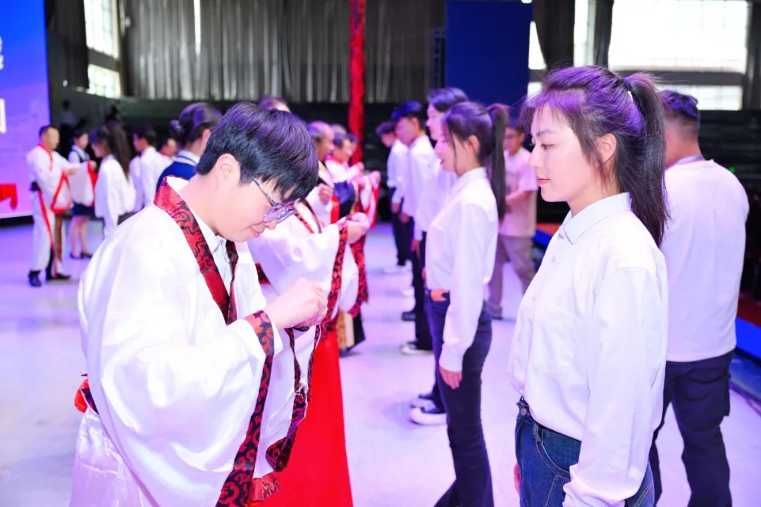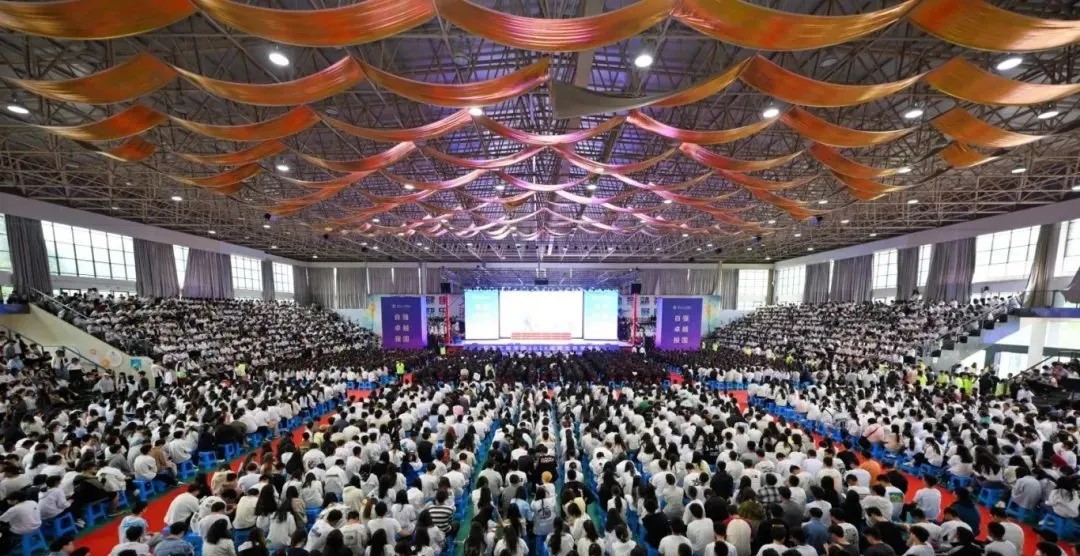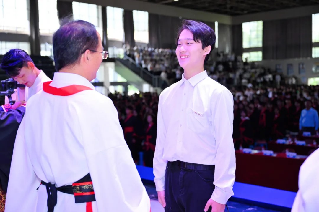 开学典礼尾声,老师们为新生佩戴校徽。一枚小小的徽章,一份沉甸甸的责任与荣耀,承载着学校的期望与传承,学子们带着庄重与敬意,满怀信心迈向新学期的征程。