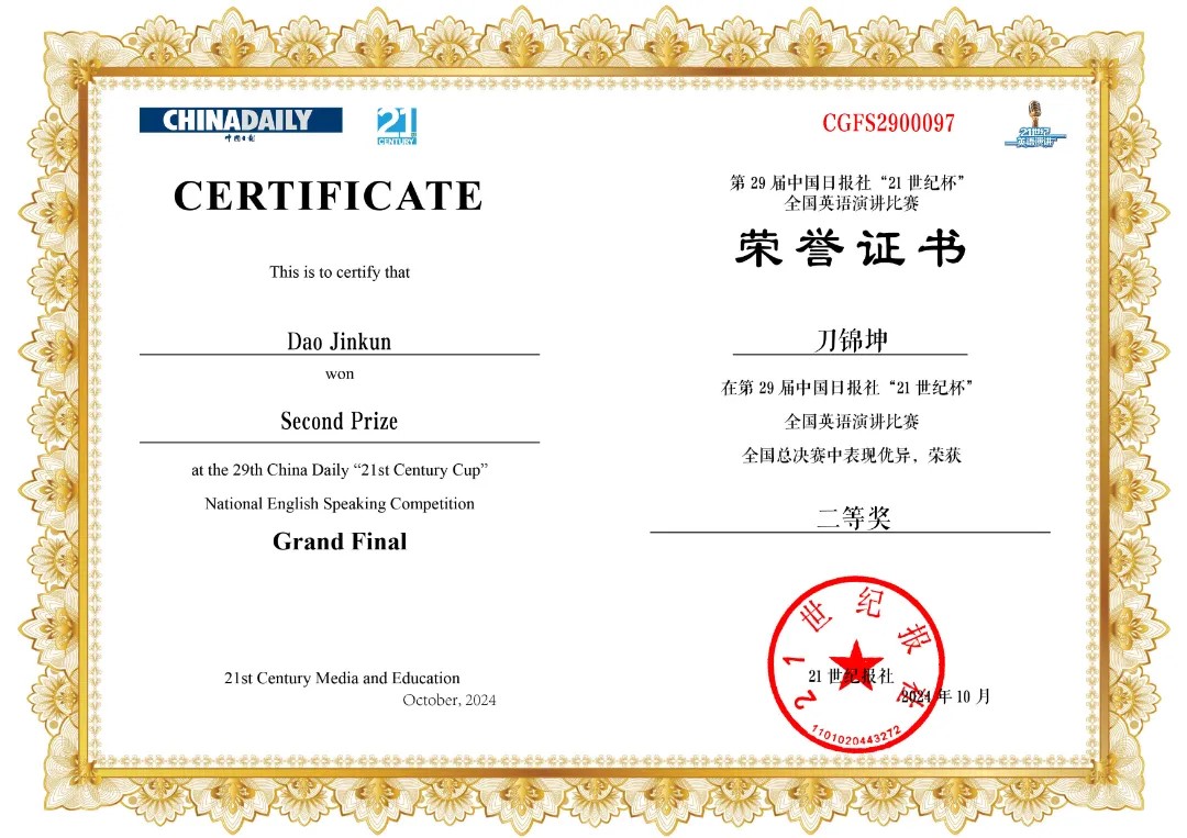 刀锦坤同学表示:“通过多次参加学科竞赛,我自身的见识与勇气得到了提升,依托学校对学生参与学科竞赛的大力支持,我能够结合专业知识与个人兴趣,努力实现个人价值。面对未来的机遇与挑战,我将更加坚定信心,继续用心提升自我,力求创造无限可能。”