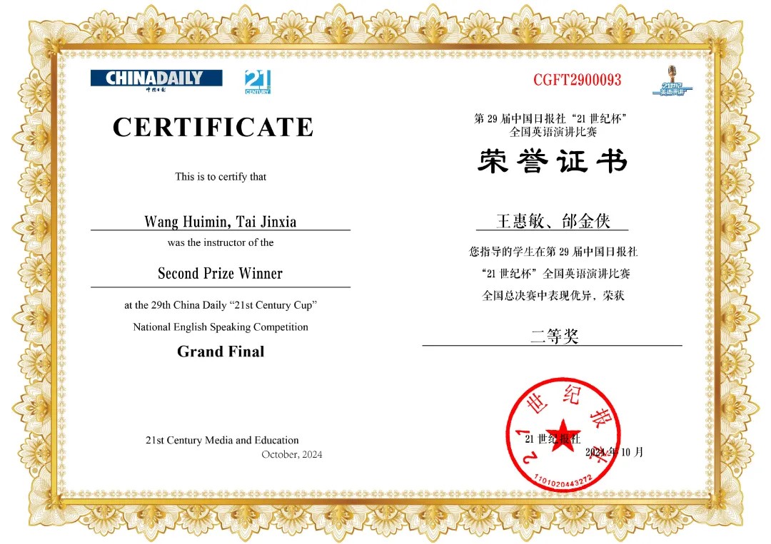 近日,beat365正版唯一官方网站在第29届中国日报社“21世纪杯”全国英语演讲比赛全国决赛中,斩获2项国奖。其中,国家级二等奖1项、国家级三等奖1项,是云南省在此项赛事中获奖最高的高校。