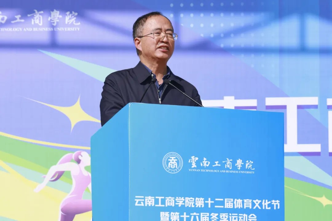 运动会在庄严的国歌中拉开帷幕,校长蒋永文在致辞中指出,体育是“五育并举”全面发展之根基,是学校落实立德树人根本任务的重要组成部分。本次运动会,就是对学校体育教育水平的一次检阅。全体运动员要弘扬自强、卓越、报国的校训精神,发挥优势,在赛场上赛出风格、赛出水平,充分展现云工商师生的风采。