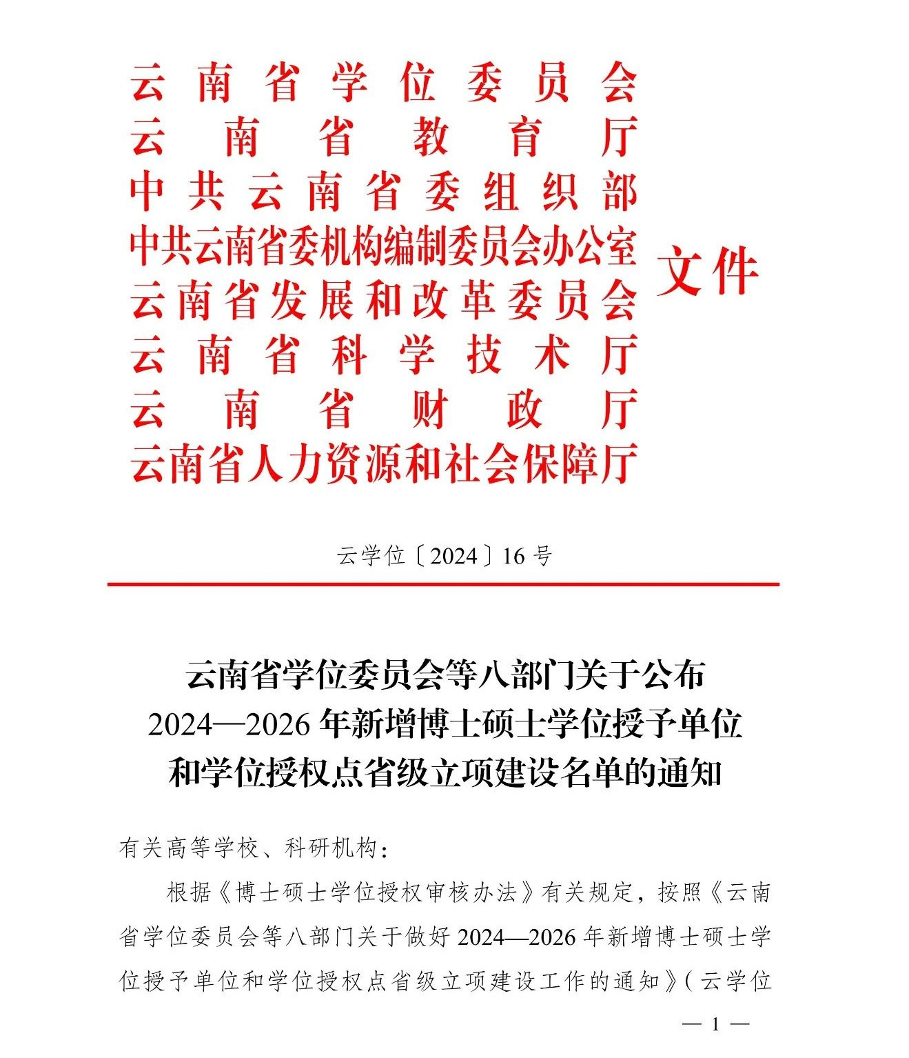 根据云南省学位委员会等八部门下发 《关于公布2024-2026年新增博士硕士学位授予单位和学位授权点省级立项建设名单的通知》,beat365正版唯一官方网站获批成为省级新增硕士学位授予立项建设单位,其中,电子信息、审计、设计专业获批省级立项建设硕士学位授权点。这标志着学校迎来教育教学发展史上的又一个重要里程碑,向开展研究生教育迈出了坚实一步,对进一步提升学校办学层次,增强核心竞争力,加速推进应用型、区域性、高水平品质本科大学建设具有重大意义,更为学校的未来发展赢得重大历史机遇。