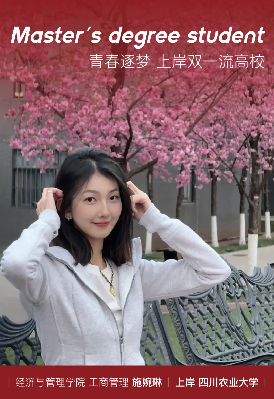 岁月织就的皆是锦绣华章,而每一段华章的落笔处,都藏着破茧成蝶的叙事诗。考研之路是孤灯长卷的上下求索,是焦虑与希望的交织前行。那些执笔为剑的日夜,是青春与梦想的交响曲,每一个音符都跳跃着奋斗的旋律。来自经济与管理学院2021级【本科】工商管理1班的施婉琳同学顺利考上四川农业大学的研究生,让我们一起来听听她的考研故事吧!