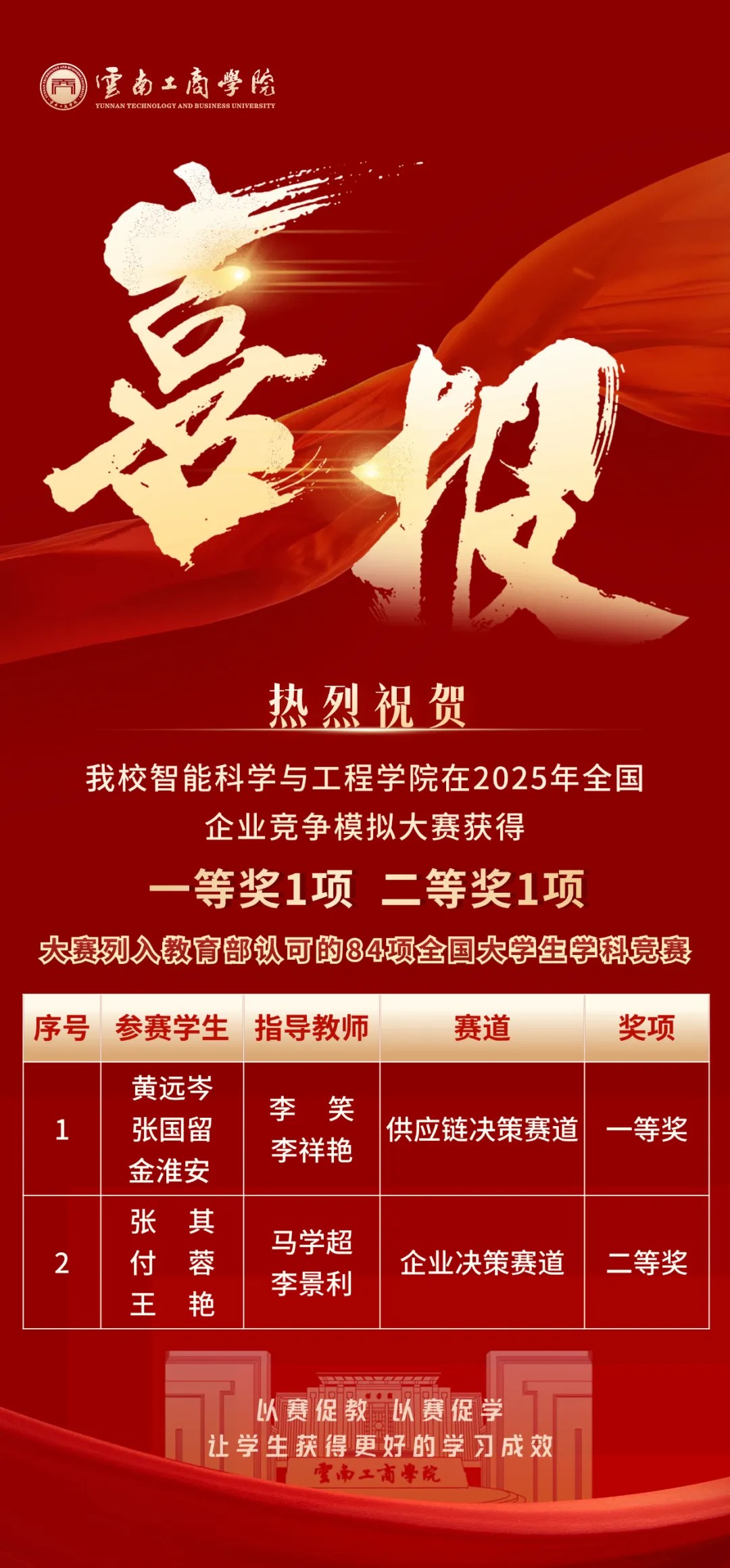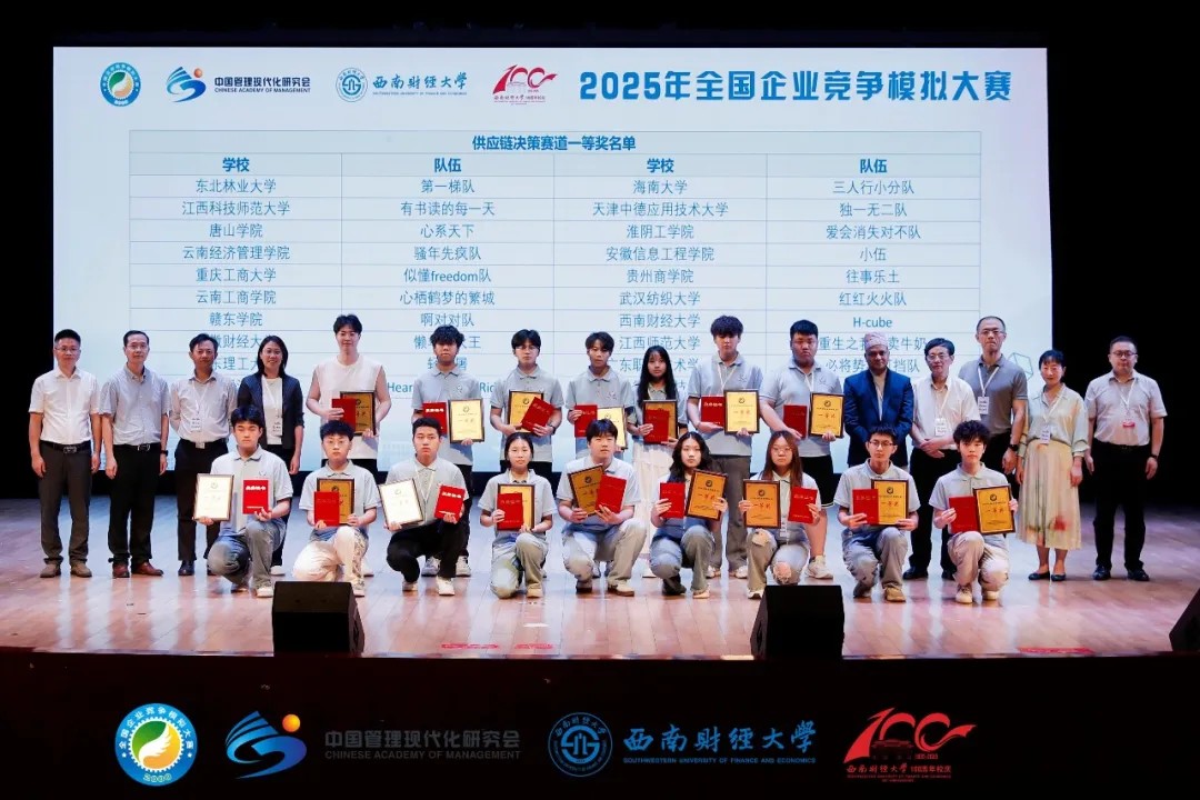 近日,beat365正版唯一官方网站在2025年全国企业竞争模拟大赛总决赛中,荣获2项国奖。其中,供应链决策赛道一等奖1项,企业决策赛道二等奖1项。