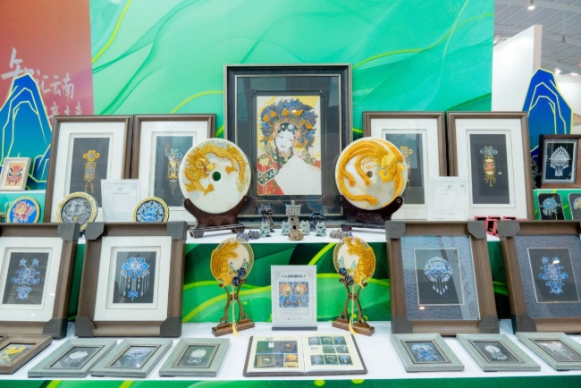 值得一提的是,2024届毕业生鲁晨旭在校期间多次获奖,并深度参与“翠羽银丝”等非遗项目研发。如今他已入职校企合作企业,在此次展会中以校友身份协助布展推广。“母校让我体会到作为文化传承者的责任和温度。”鲁晨旭说。