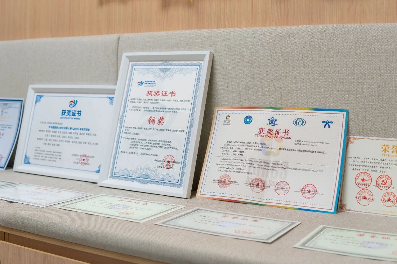 在竞赛领域,他的成绩单更加耀眼:2023年、2024年中国国际大学生创新创业大赛国家级铜奖,2025年全国大学生电子商务“创新、创意及创业”挑战赛国家级二等奖,2024年“一带一路”暨金砖国家技能发展与技术创新大赛国家级二等奖,以及连续三年问鼎中国国际“互联网+”大学生创新创业大赛省级金奖。“很多人都惊叹于这些奖项,我自认为并不是最有天赋的学生,对我而言,每个奖项背后都是无数个日夜的坚持。”赵健豪平静地说。