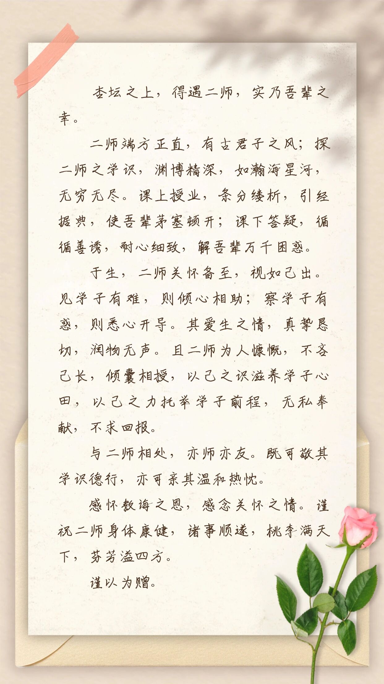 2023级英语专业的一名学生将满腔敬意与祝福,凝练为一首诗词赠与任丹与另一位老师:
