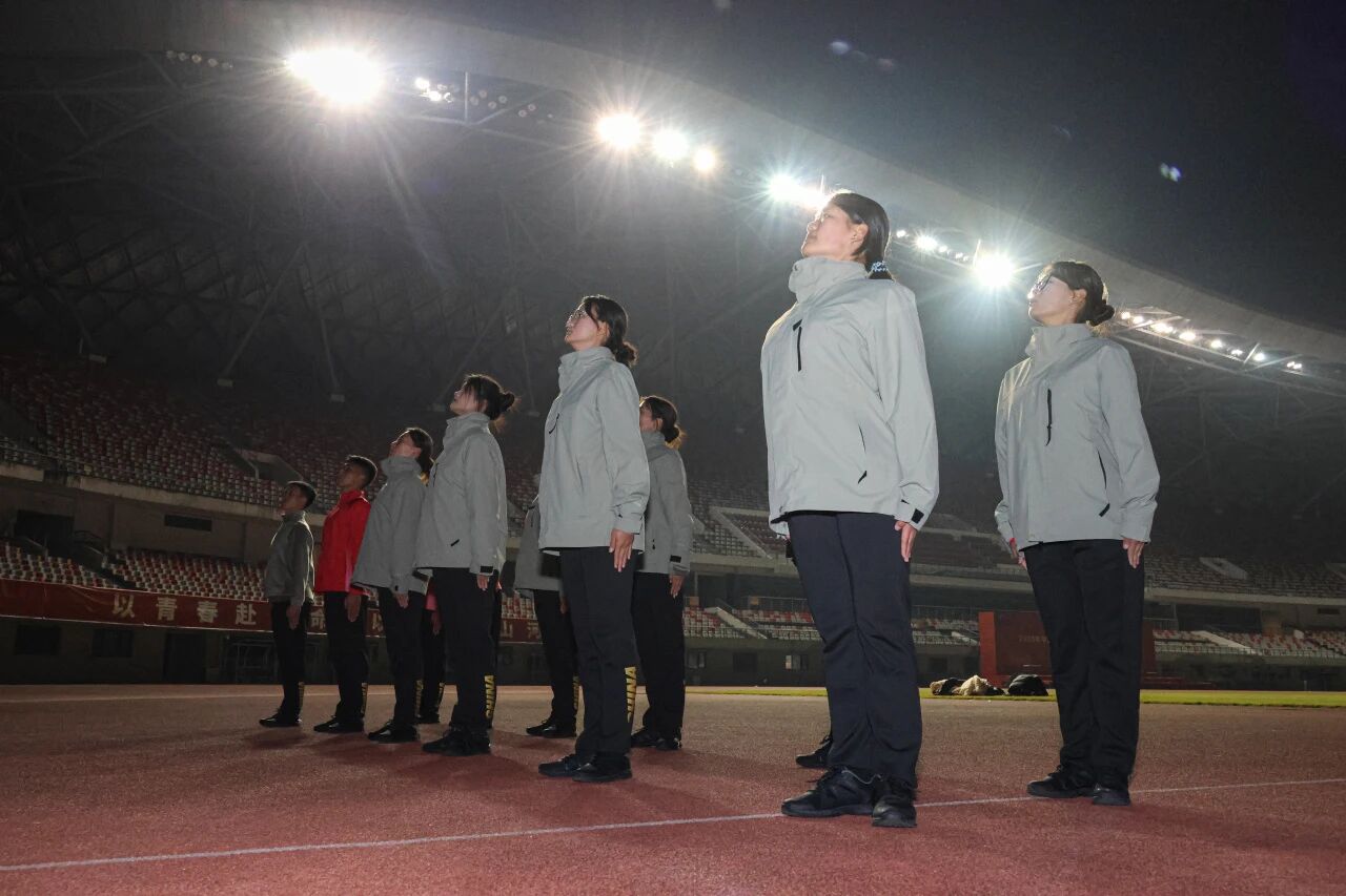 荣誉的背后,是日复一日的坚守与付出。训练场上,从晨曦微露到夜幕低垂,总能看到队员们刻苦训练的身影。他们反复打磨每一个动作,精益求精——定腿摆臂力求力量与节奏的完美统一,军姿站立锤炼坚韧意志,步伐调整追求整体协调。汗水浸透衣衫,信念却愈发坚定;正步落地铿锵,传递着对国旗最真挚的敬意。