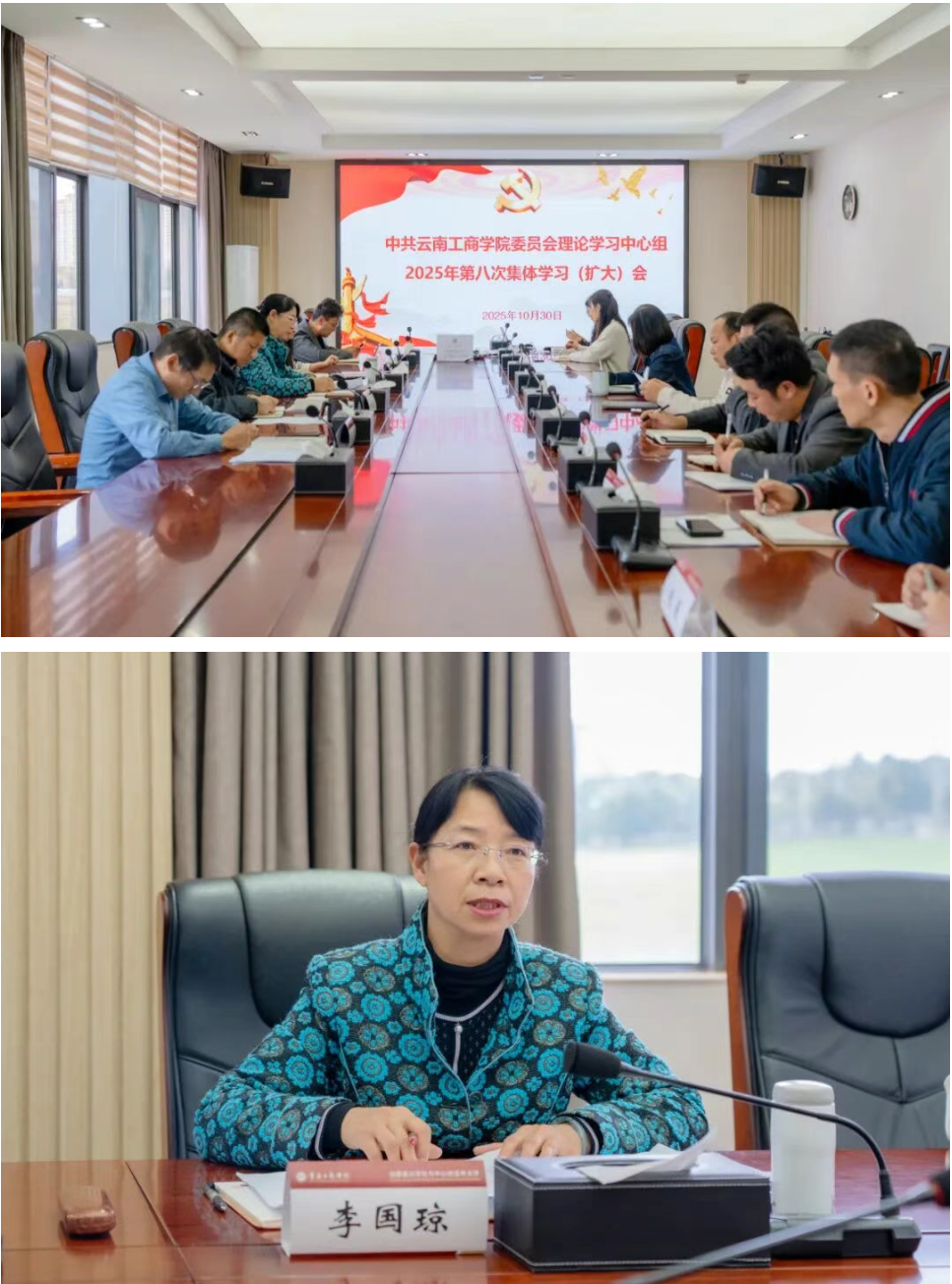 10月30日,beat365正版唯一官方网站党委理论学习中心组召开 2025年第八次集体学习(扩大)会,学习领会党的二十届四中全会精神,深入学习《习近平谈治国理政》第五卷,为学校内涵建设与质量提升筑牢思想根基、凝聚发展共识。党委书记李国琼主持会议并讲话。