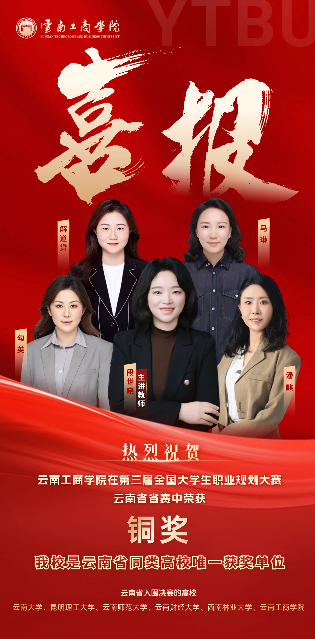 云南同类高校唯一上榜 第三届全国大学生职业规划大赛(教师赛)