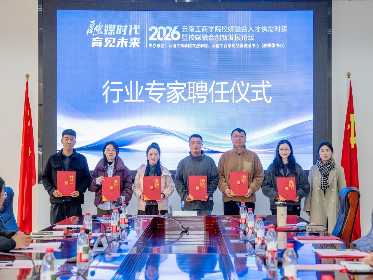 学校与合作媒体管理层确立“价值共生、能力共创、成果共享”合作方向,落地两项核心举措:为中央广播电视总台讲述栏目、昆明市融媒体中心等6家单位授牌,聘任30名行业专家为校外导师,稳定合作资源供给,实现人才培养与行业需求精准对接。