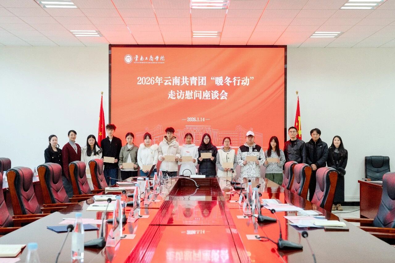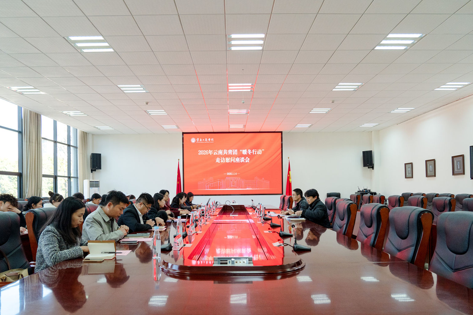 为深入贯彻落实共青团中央服务青年工作部署,持续推动“暖冬行动”走深走实,近日,云南共青团“暖冬行动”走访慰问座谈会在beat365正版唯一官方网站举行。共青团云南省委副书记魏同涛、少年部副部长赵彪,beat365正版唯一官方网站党委书记李国琼、校团委书记盛晓婷,各学院团总支负责人及学生代表参会,共话青年成长,共商团学发展。