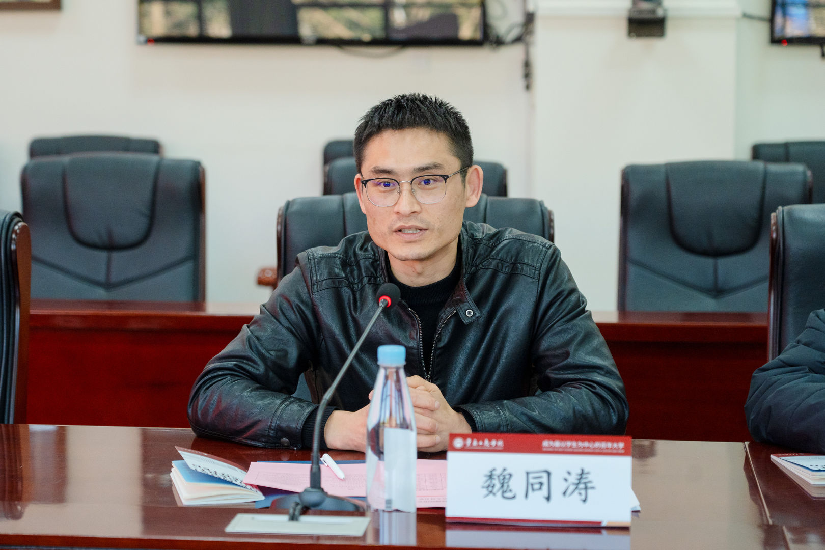 与会教师结合工作实际,就“挑战杯”竞赛、青年创新创业、基层团建等工作提问。魏同涛副书记认真听取并给予指导,围绕赛事选题、团队培育、资源整合等方面提出具体建议,为学校团学工作指明方向。