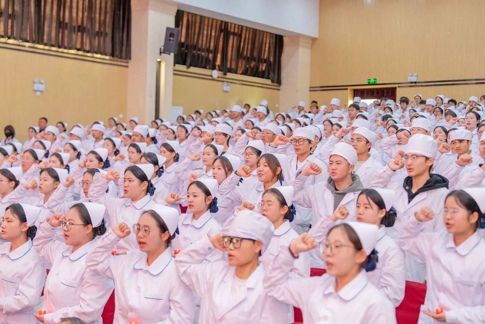 宣誓环节将氛围推向高潮。全体学生手捧烛光、肃然伫立,庄严诵读南丁格尔誓言,“终身纯洁,忠贞职守…” 的铿锵誓言回荡在报告厅内,深深镌刻在每一位未来护理人的心中,成为职业生涯的精神指引。