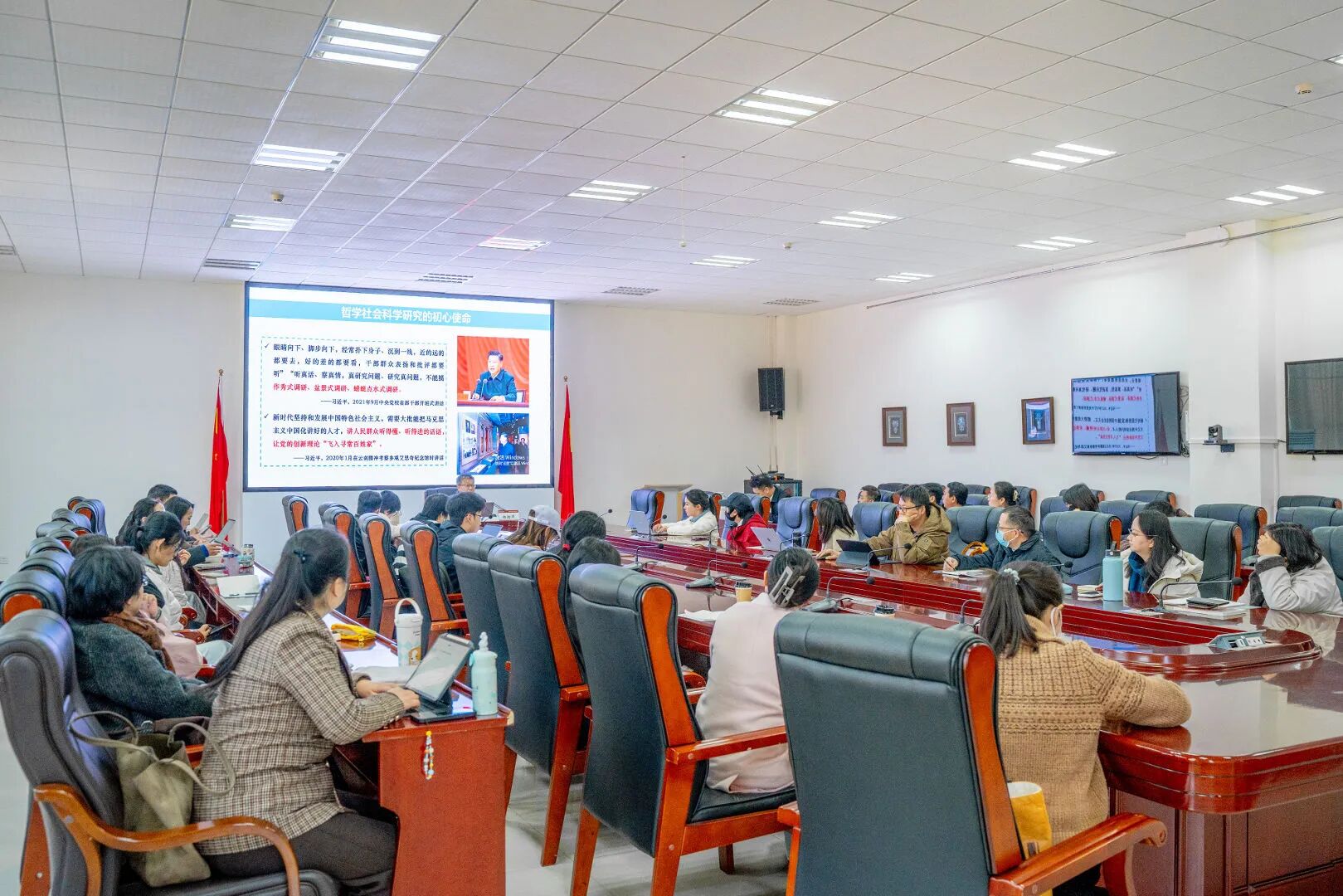1月22日下午,由学科建设办公室科研中心主办的2026年度国家社科基金项目申报辅导培训会在行政楼一楼会议室顺利举行。会议特邀云南大学副校长、知名学者杨绍军教授担任主讲嘉宾,各人文社科类二级学院科研骨干教师齐聚一堂,共赴这场精准赋能的科研盛宴。