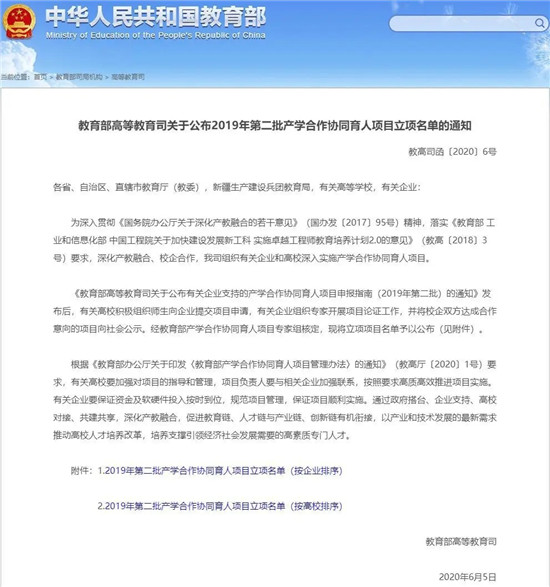 【中国教育在线】近日,教育部高等教育司下发了《关于公布2019年第二批产学合作协同育人项目立项名单的通知》(教高司函〔2020〕6号),其中,beat365正版唯一官方网站获批9项。产学合作协同育人项目是教育部为贯彻落实《国务院办公厅关于深化高等学校创新创业教育改革的实施意见》(国办发[2015]36号)和《国务院办...